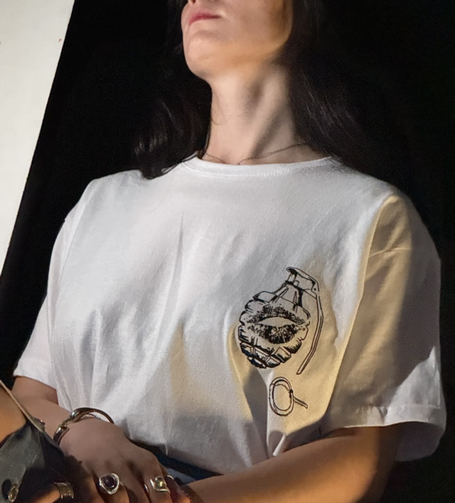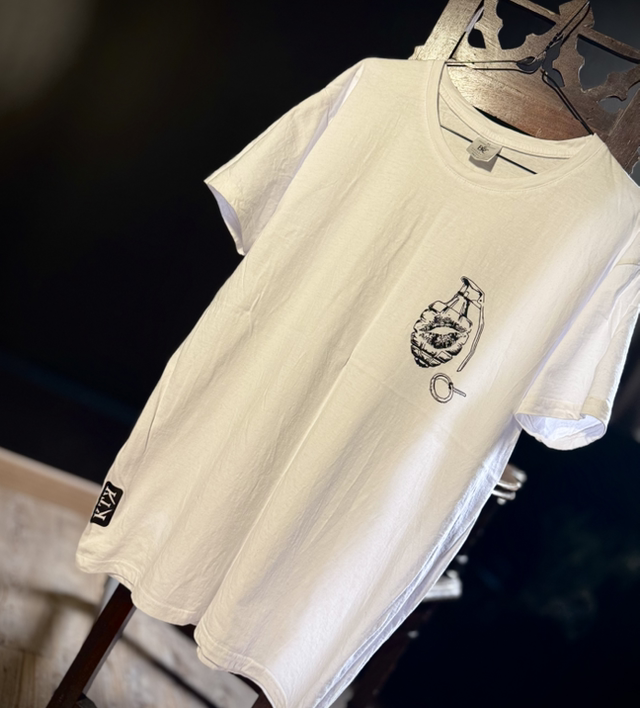 T-Shirt « Grenade Kiss » - Édition 🍂- Blanc - Poitrine gauche